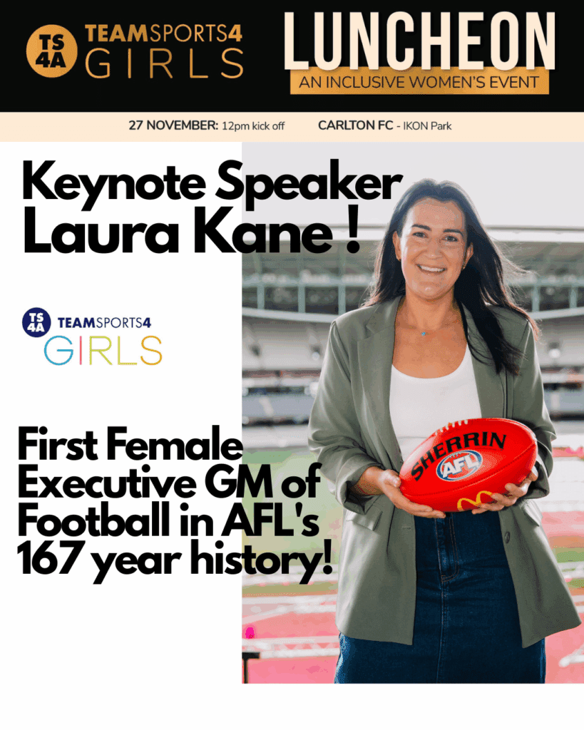 TeamSports4Girls is a dedicated initiative within TeamSports4All — part of the work we do to get financially disadvantaged kids connected into their community. While TS4A supports all children experiencing financial hardship to play and stay in community sport, TeamSports4Girls exists to tackle the specific challenges faced by girls who are being left behind at alarming rates.